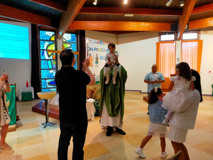 Quelle joie dans l’église Jean XXIII le dimanche 2 octobre pendant la messe durant laquelle ont été célébrés les baptêmes de Julia Telino Azevedo et Nicolas Gasparini.